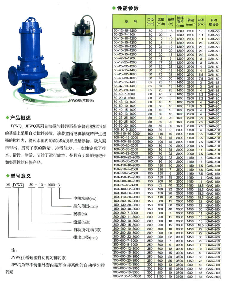 首  页    产品展示    JYWQ,JPWQ系列自动搅匀排污泵